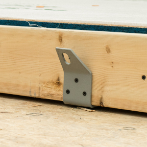 Immediately to the left of the wall bracket, butt the base plate of the Wall-Lift to the wall and attach it to the sub-floor with screws.