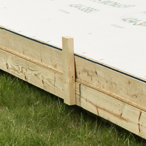 Prevent the bottom of the wall from sliding while it is being raised by attaching at least three 2' pieces of scrap to the outside skirt of the building.